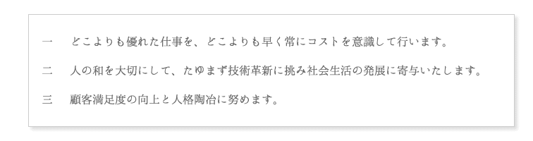 ことを社員一同励行し、これからも一歩一歩、一日一日を大切に、お客さまから「愛され」「信頼される」日本エアコン(通称)を育み、日本の社会環境の向上、発展にお役に立てるよう精進する所存でございます。